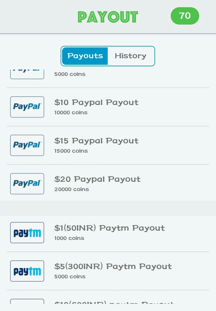 β—Ύ 10000 Coins = 600 PayTM Cash or $10 PayPal