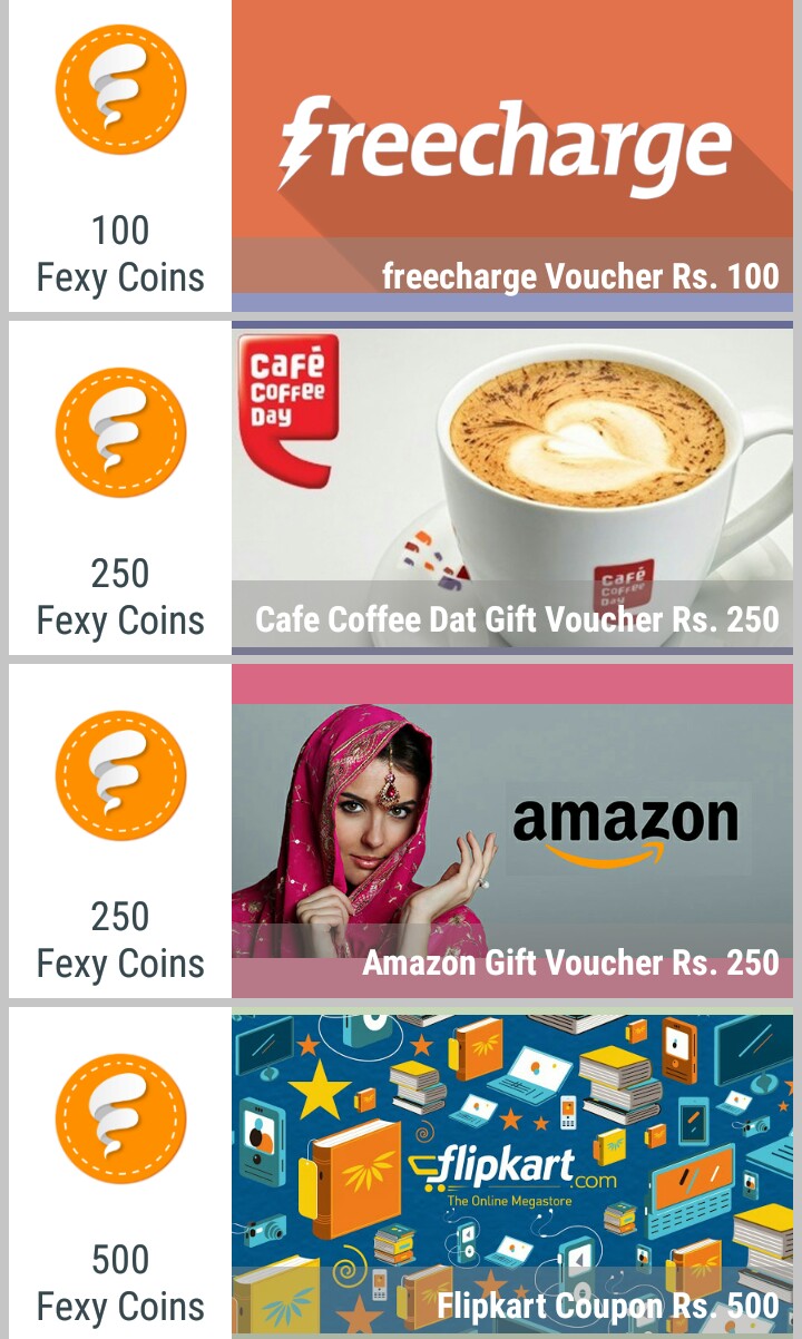 You can Redeem it as Amazon, Flipkart, Freecharge,CCD Vouchers also. So Start Referring and Start Earning From Fexy App.