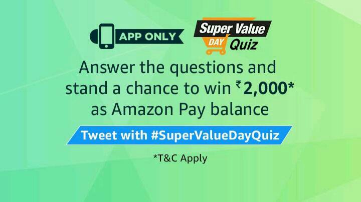 Amazon Super value day quiz– Hi avjtrickz Readers, Amazon is Back with New Quiz and here we will Provide all answers of Super Value Day quiz. By Participating todays Quiz You will get a chance to win Rs 5,000 pay balance for free.