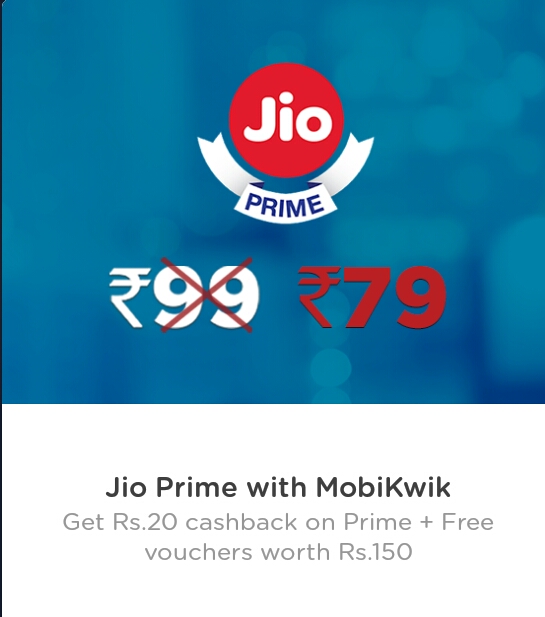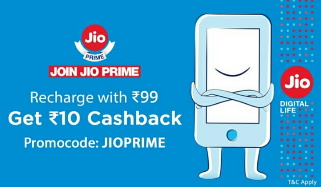 PayTM Jio Prime Offer : Activate Jio Prime of Rs.99 & Get Rs.10 Cash back