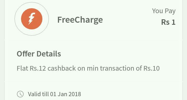They are now back with one another cash back deal. You Will Get Rs 12 cashback on Rs 10 Recharge or bill payment With Just using a Promo Code. You need to purchase that promo code at only Rs 1. Also you can use your FreeCharge Wallet Cash also applicable to All operators including Airtel.