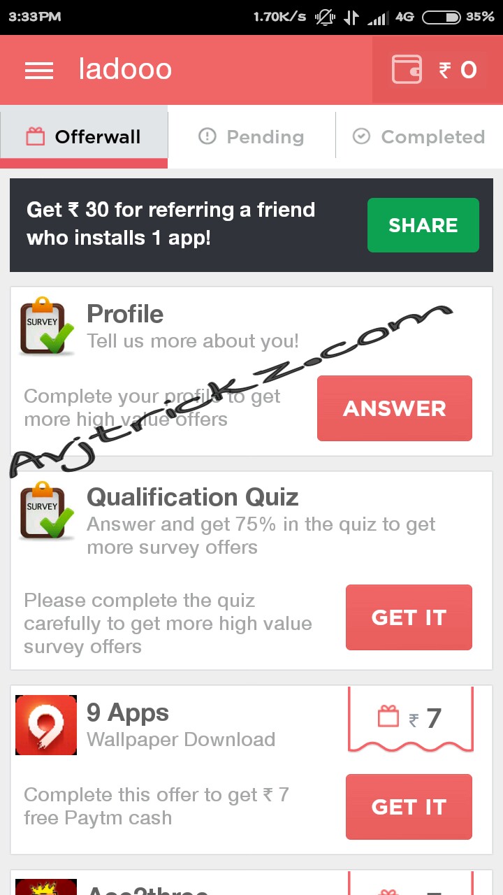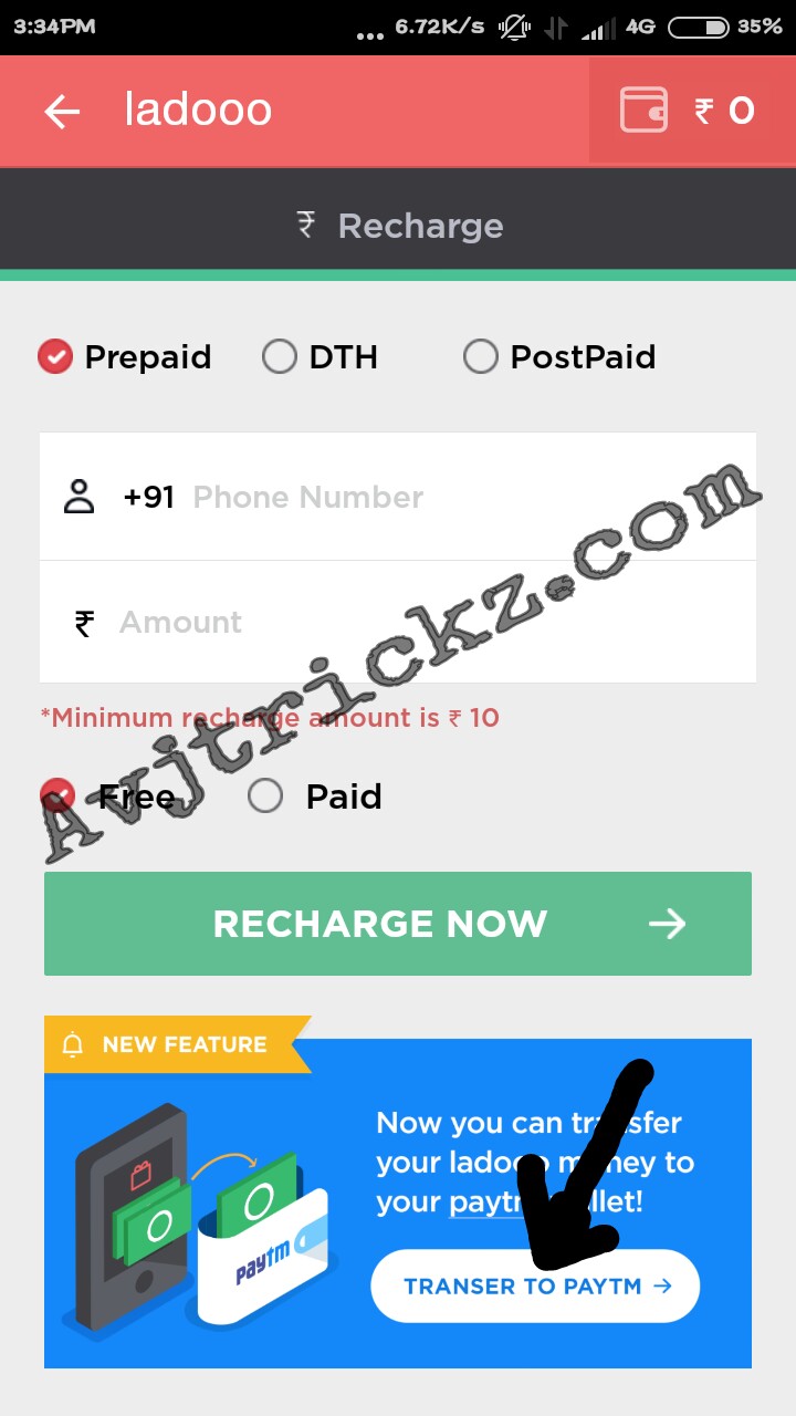 HERE IS HOW TO GET FREE RECHARGE OR FREE PAYTM FROM LADOOO TRICK :