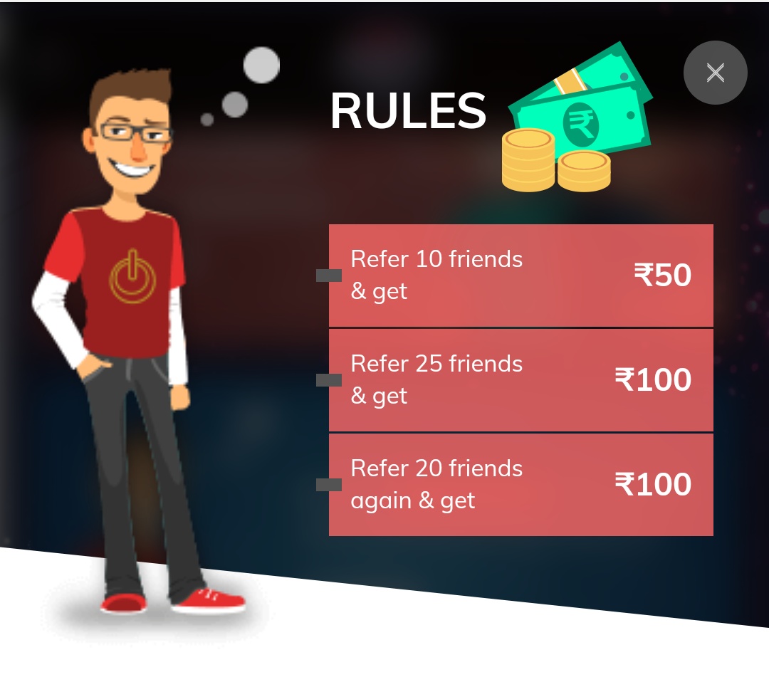 3. When your friends signup with your referral code the you get bonus entry with cash.
